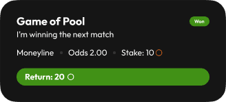See every bet’s state at a glance: won, lost, pending, active or cancelled. When it’s done, the winner submits the result and the other person confirms it so the outcome is settled.